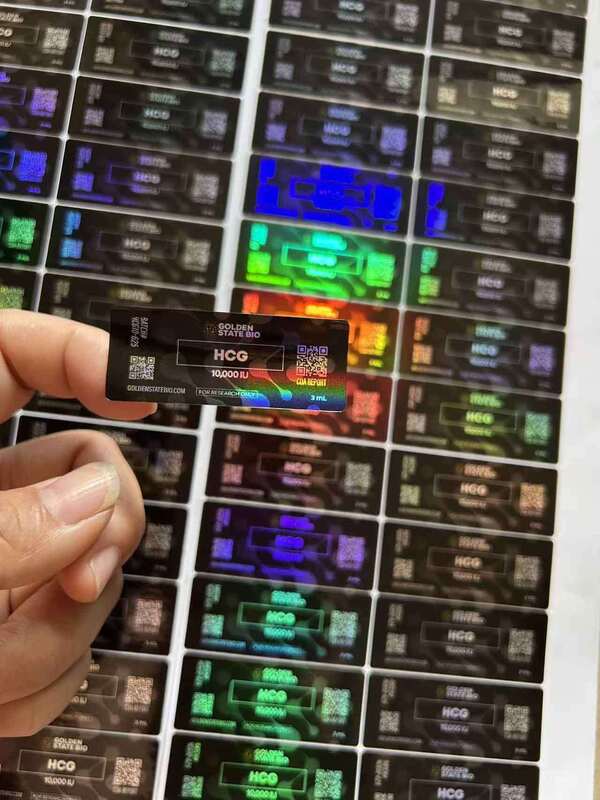 High-quality adhesive labels designed specifically for 2ml or 3ml peptide glass vials, featuring customizable laser hologram effects.
